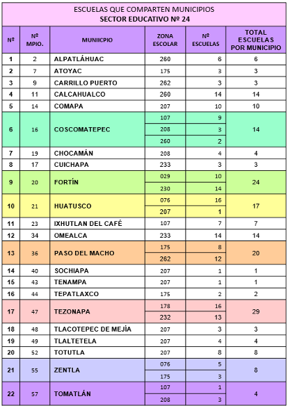 Las 12 Zonas Escolares que pertenecen al Sector Educativo N° 24 son: